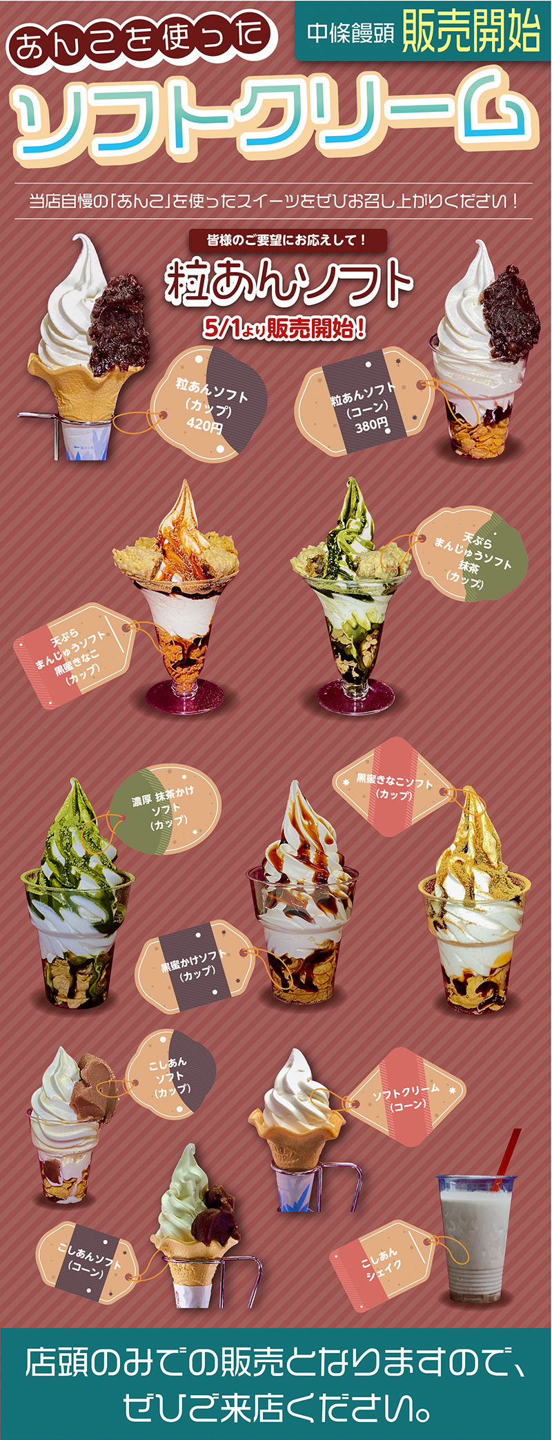 中條饅頭夏季限定商品「あんこを使ったソフトクリーム」